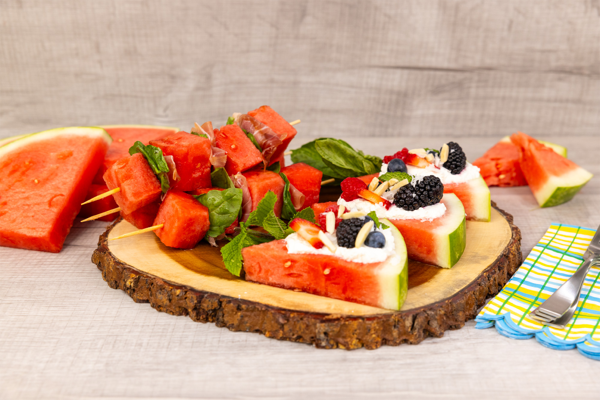 Your next cookout is in for a surprise! Find refreshing watermelon recipes here. Watermelon Pizza and Skewers Recipe