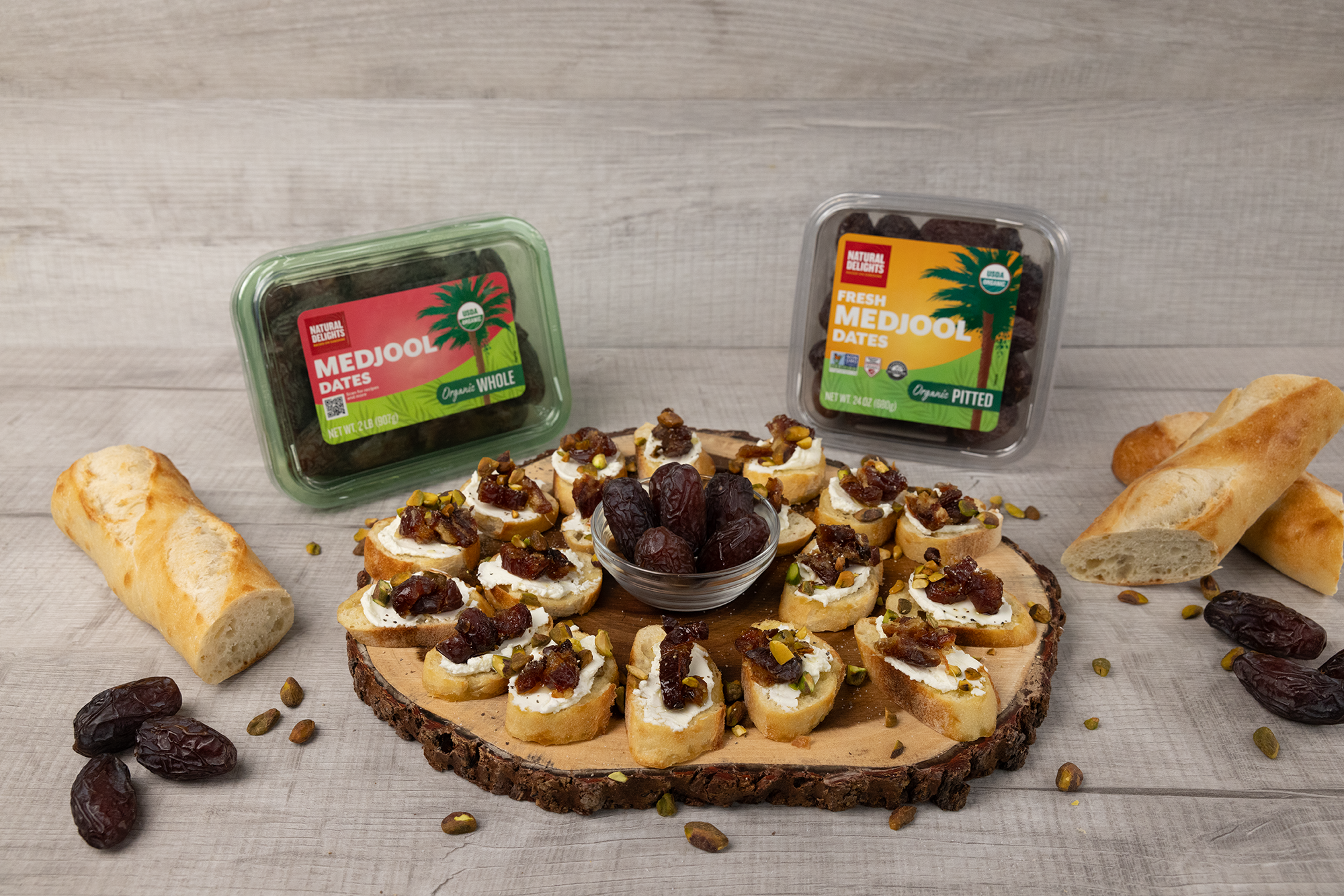 Sweeten things up with dates on a baguette topped with creamy goat cheese. Natural Delights Date & Goat Cheese Bruschetta Recipe