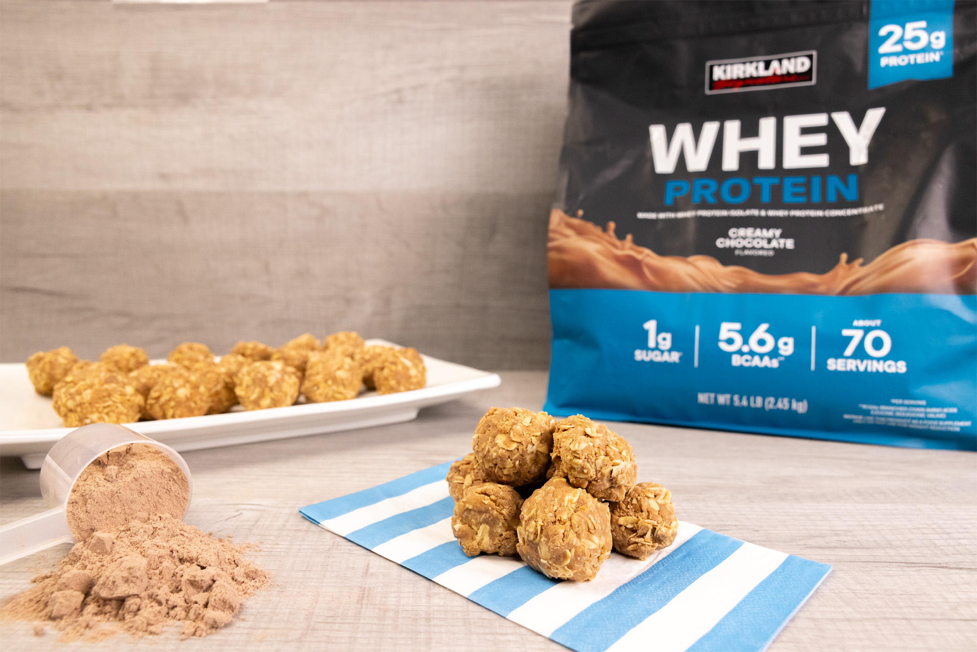 Trade in your protein shake for these peanut butter protein balls! Kirkland Signature Peanut Butter Protein Balls Recipe