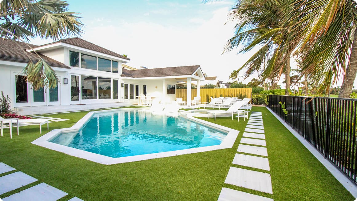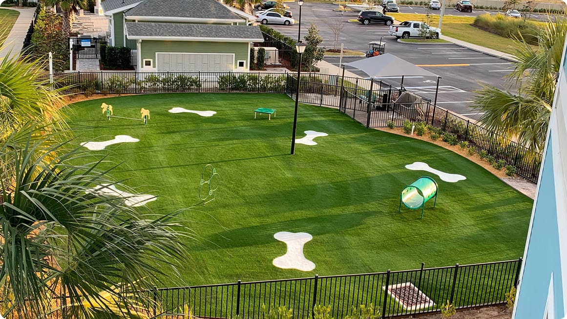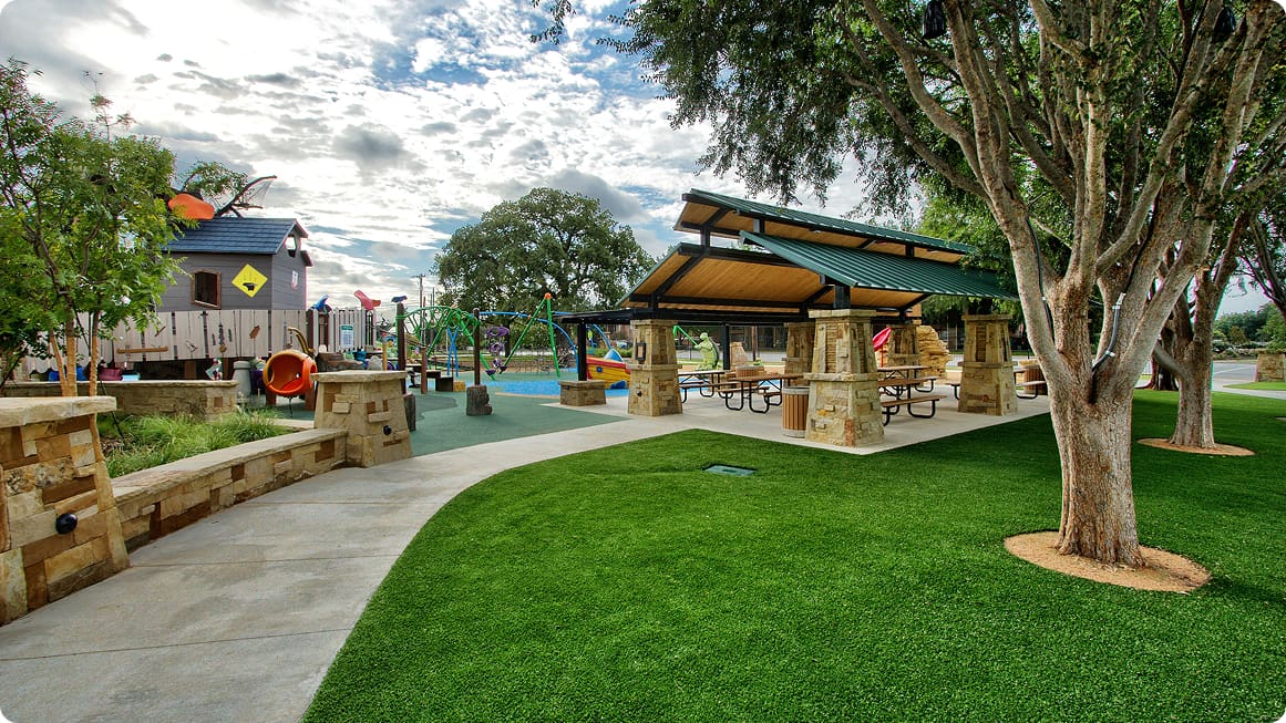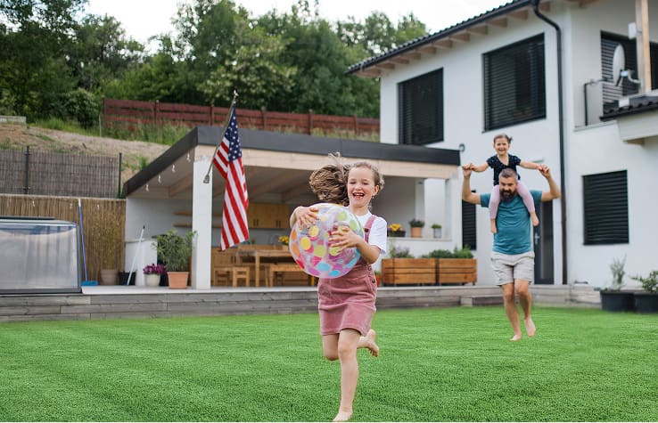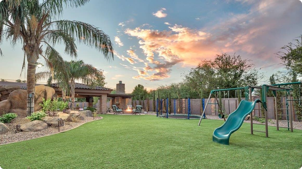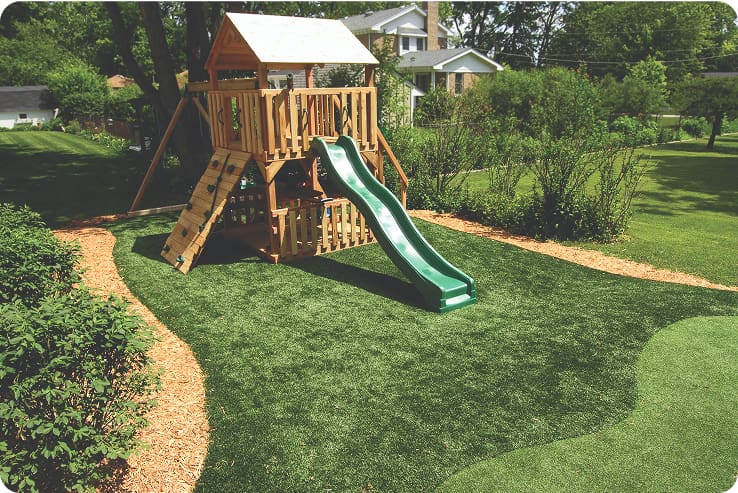 Artificial turf provides a soft, durable and cushioned surface, which helps reduce the risk of injuries and keeps play areas safe and comfortable. With minimal maintenance and superior drainage, it gives the family a fun space to play in any season.